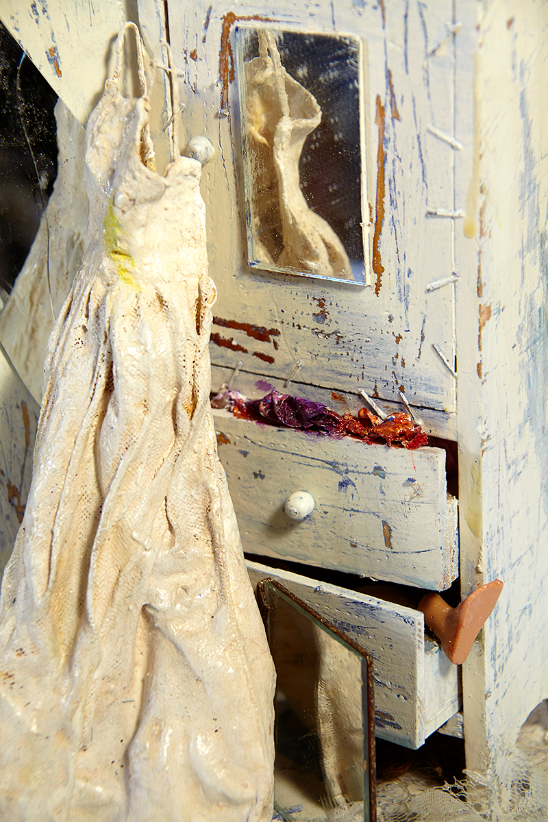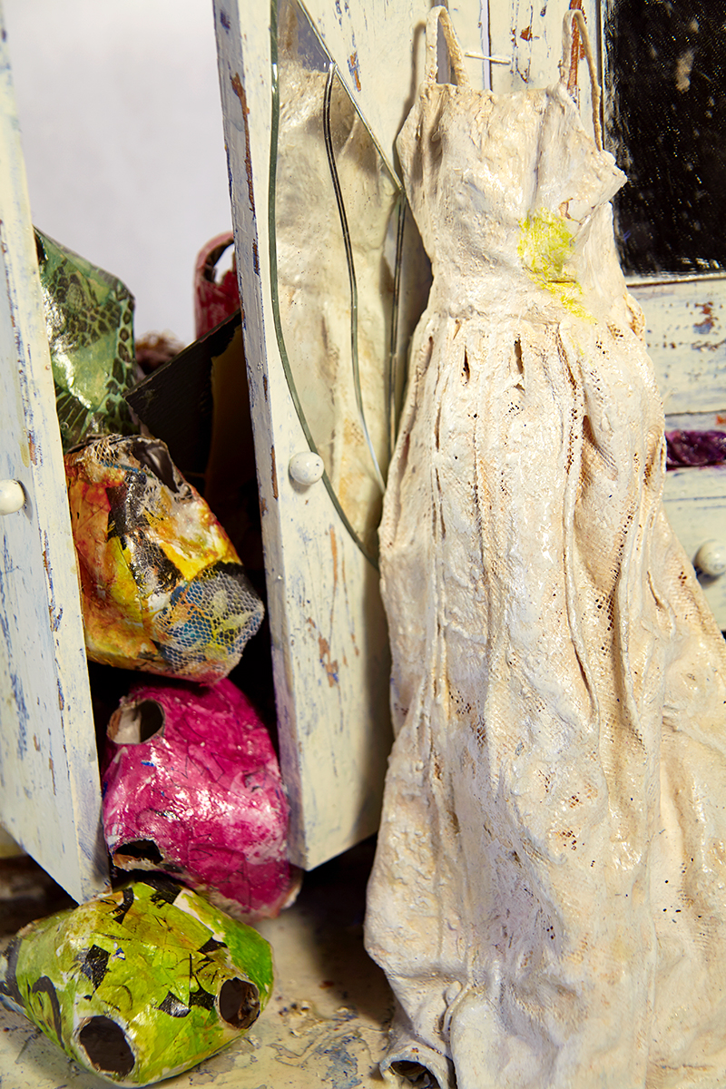 Feminas Portfolio La femme grise Maille métallique, objets métalliques La femme grise La femme grise La femme grise La Femme vide La Femme vide Marre! Divers objets, cheveux, tissus, acrylique 34 x 25 x 29 2010 Marre! L’interdite Mailles plastiques, fil de fer, acrylique 67 x 16 cm 2009 L’interdite Le Petit Chaperon Rouge Bois, divers objets, poupées Technique mixte 46 x 36 cm 2004 Le Petit Chaperon Rouge